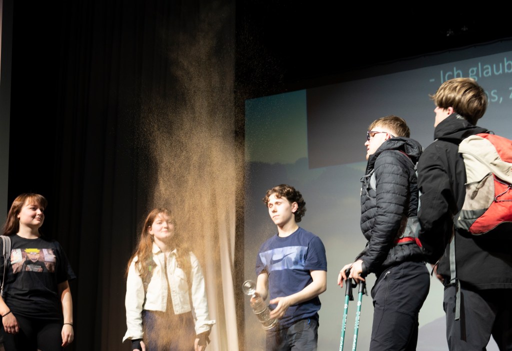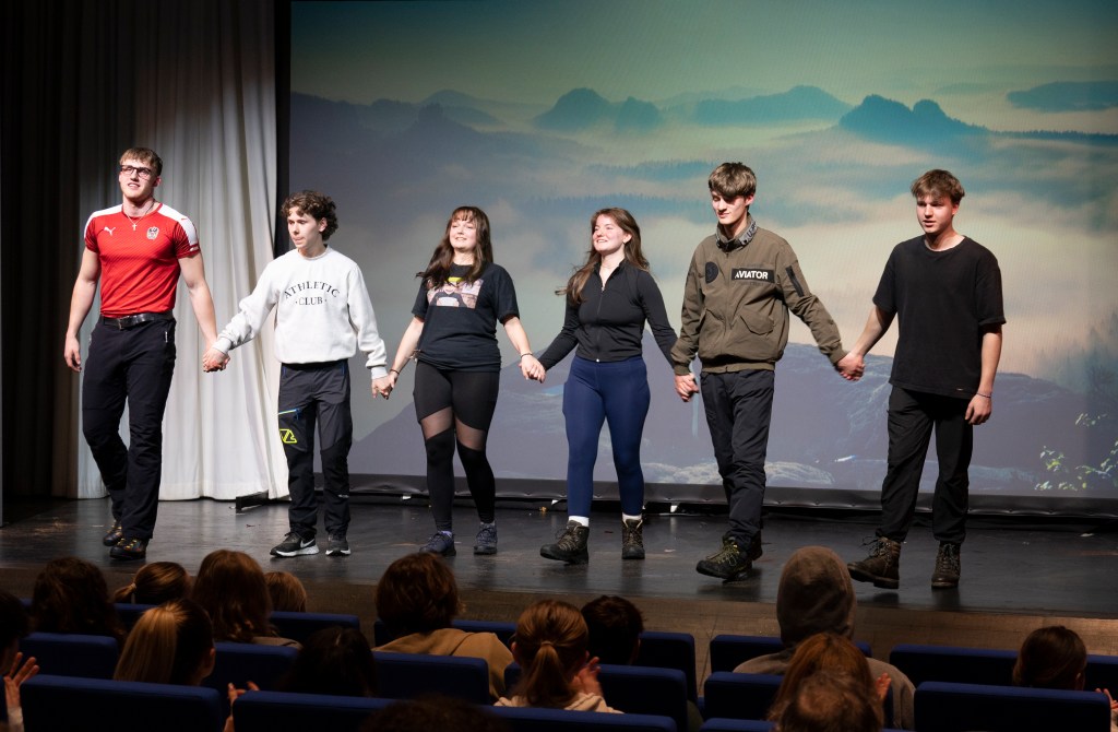 Six friends promise each other to climb the same mountain together every few years. They meet there again and again: as kids, as teenagers, in the prime of their lives and when they grow old. Every time we meet them, they have changed – and the world around them changes as well. The play “Mountain View” – written by 19-year old Stella Bösz – is a story about ageing, about friendship and love, about loss and regret. Six people try to cope with life – each in their own way. Can their friendship endure the sound and the fury of an ever more turbulent world?